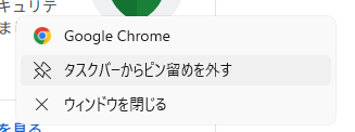 - 「タスクバーにピン留め」を選択