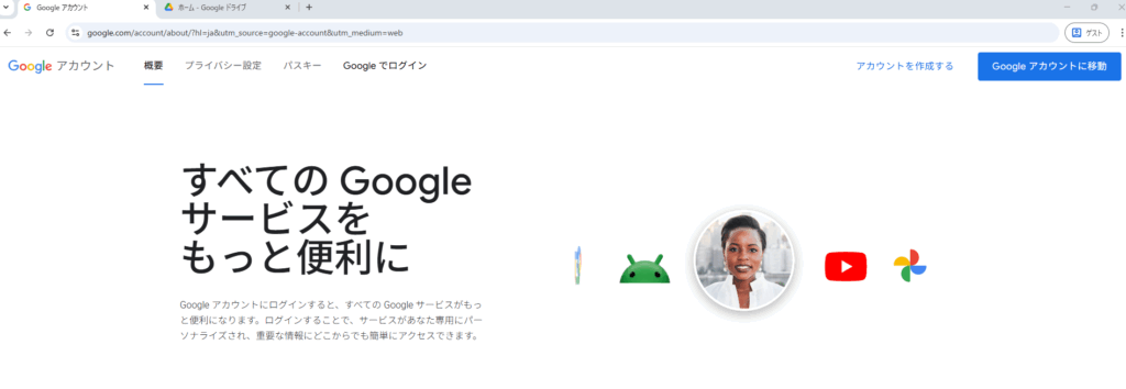 検索結果から「Googleアカウントの作成」ページをクリックします。